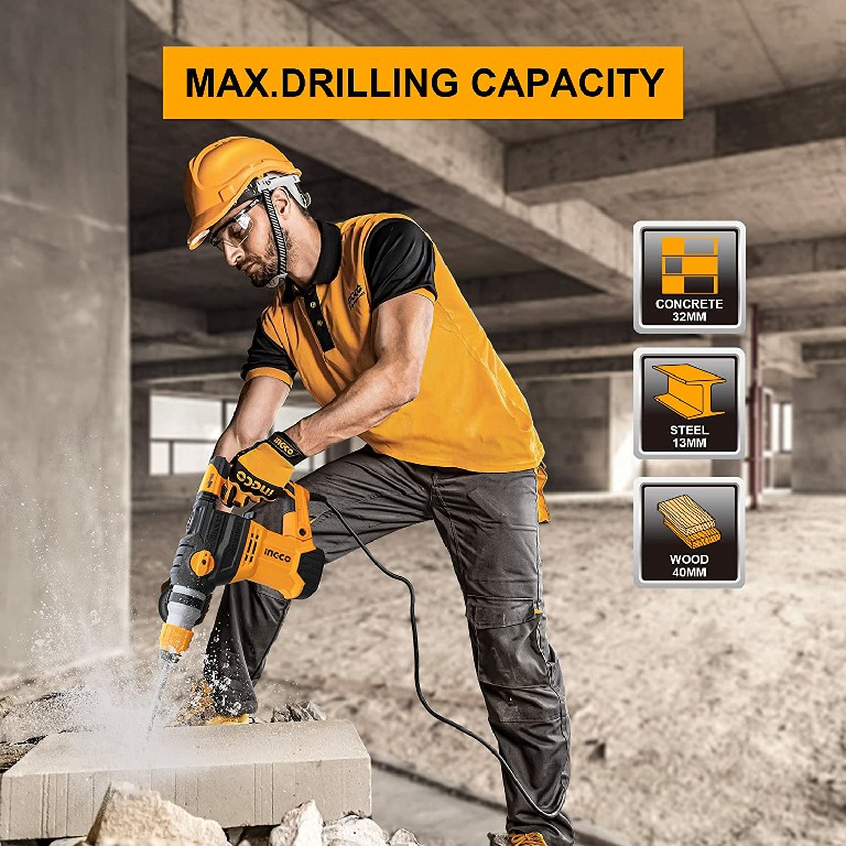 The INGCO 1500W hammer drill machine (RH150028) is a heavy-duty rotary hammer drill designed for professional concrete drilling and demolition work. Engineered for power and durability, this hammer machine delivers exceptional performance for construction professionals and serious DIYers.