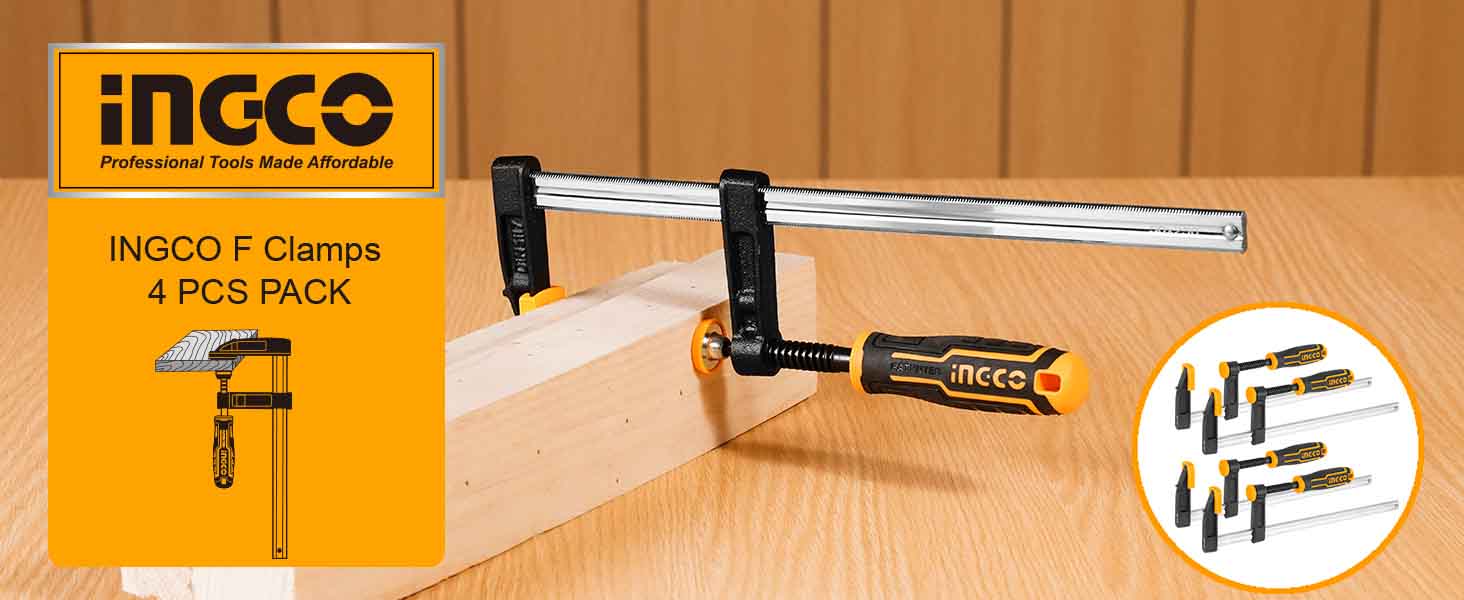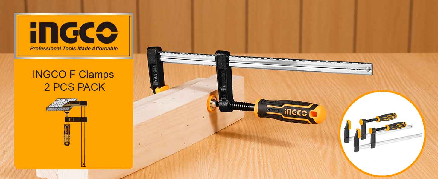 The INGCO F Clamp HFC020503 is a versatile and heavy-duty F clamp designed for professional and DIY applications. Perfect for woodworking, tightening in cutting work, fixing adhesive work, material fixation, and temporary assembly, this clamp ensures a secure grip with minimal effort.