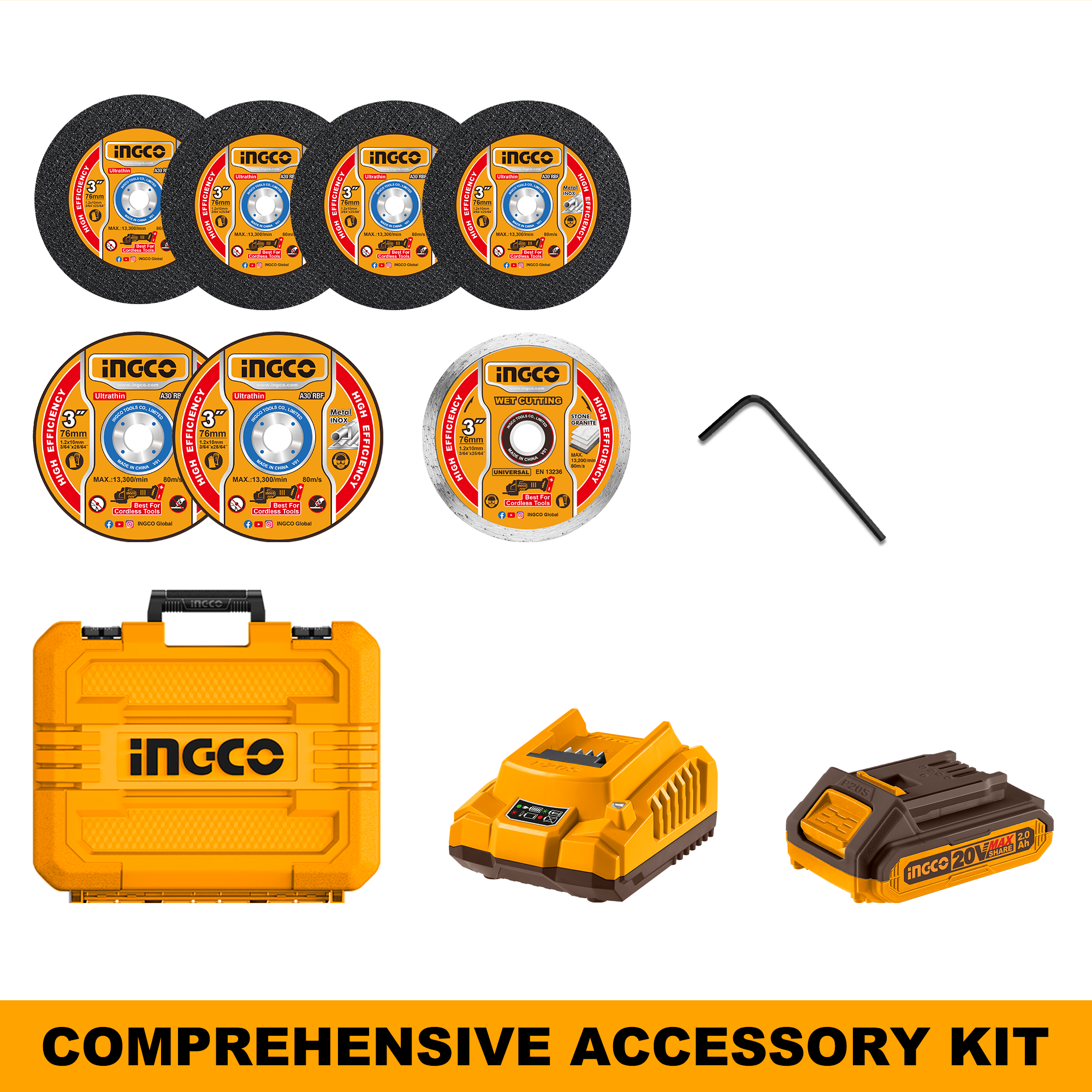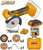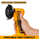 The INGCO Cordless Mini Cut Off Machine CAGLI76012 is a nice tool for anyone needing a compact, high-performance cutting tool. This cordless mini cut off machine combines power and portability, making it ideal for cutting metal, steel, and wood with precision. Equipped with a battery and charger, it eliminates the hassle of cords, offering freedom of movement. Its 3-inch blade ensures smooth, fast cuts, while the ergonomic design guarantees comfort during extended use. Whether you’re a professional tradesperson or a DIY enthusiast, this metal cutting machine delivers reliability and efficiency at an affordable cutting machine price. Perfect for workshops, construction sites, or home projects.