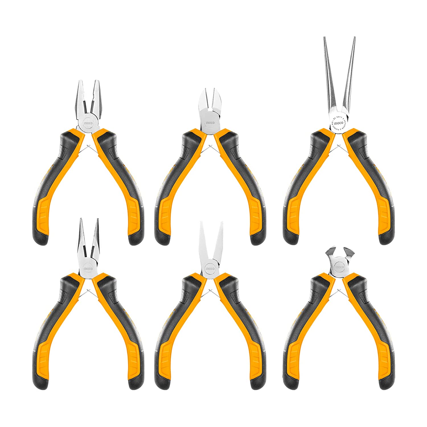 INGCO Mini Pliers Set, 6 PCS/SET, Including Combination Plier, Diagonal Cutting Plier, End Cutting Plier, Long Nose Plier, Flat Nose Plier, Needle Nose Plier flash